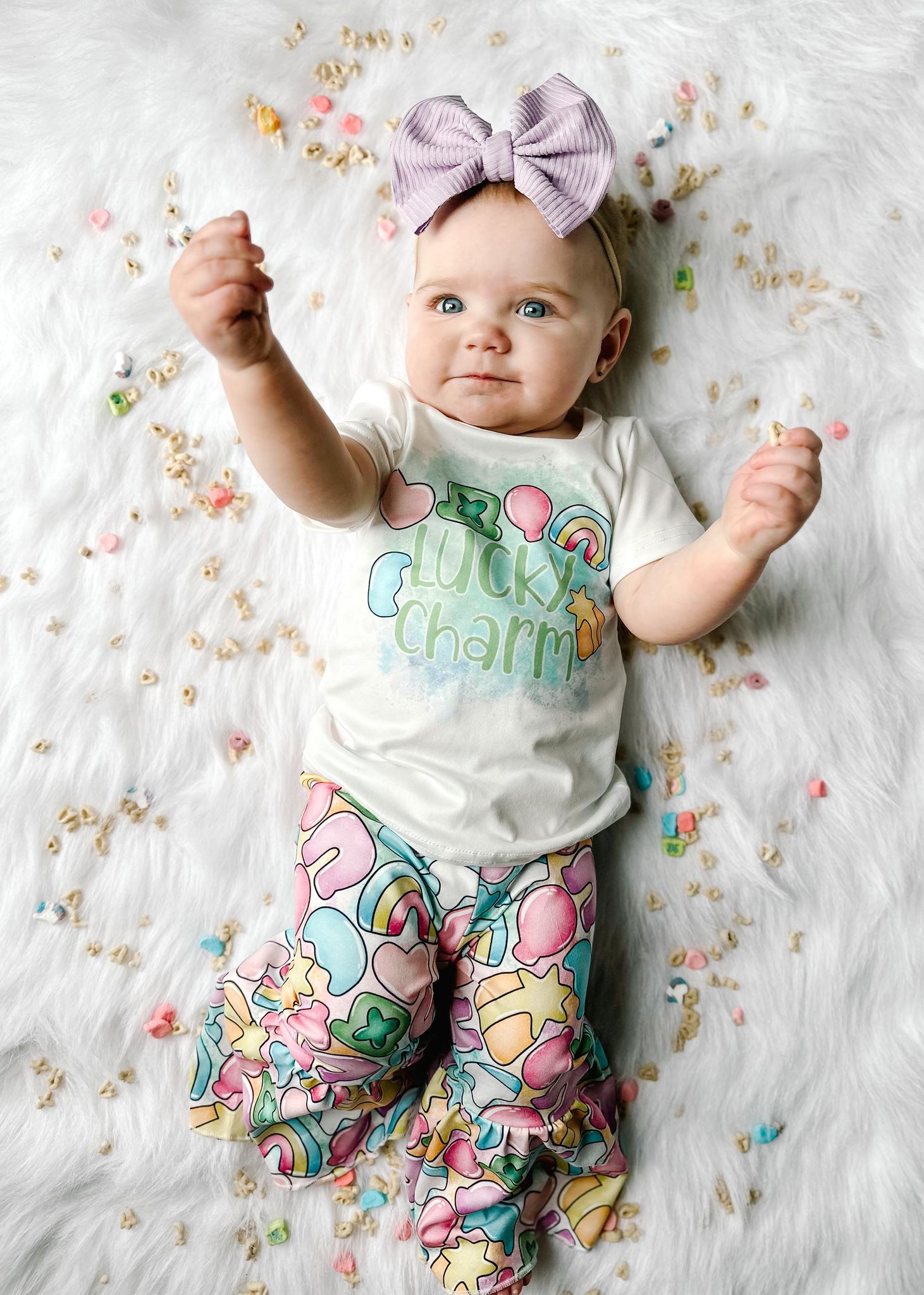 GSPO2101 Lucky Girl Rainbow Print Bell Pants Girls St. Patrick's Day Clothes Set