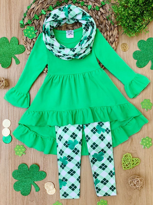 (Custom Design MOQ 5) Girls Green St. Patrick's Hi-low Outfits 3 Pieces Clothes set