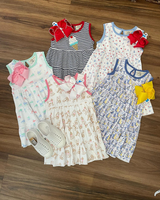 (Pre-order)GSD0796 Dog Print Girls Summer Knee Length Dress