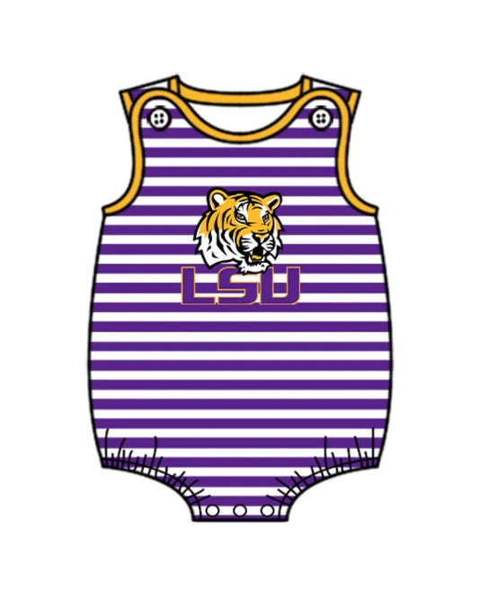 (Custom Design Preorder MOQ 5 Each Design) Team's LSU Tigers Stripes Print Boys Summer Matching Clothes Brothers Wear