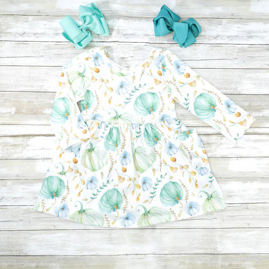 (Custom Design MOQ 5) Aqua pumpkin baby girls knee length dress