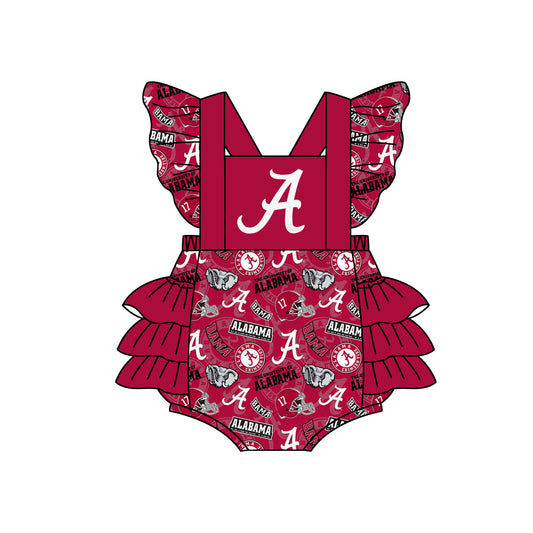 (Custom Design MOQ 5) Alabama football team's design baby girls bubble romper