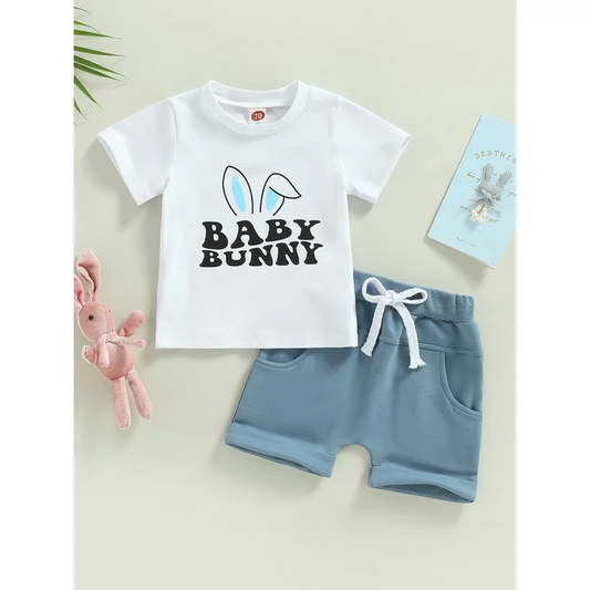 (Custom Design MOQ 5) Baby Bunny Print Boys Easter Clothes Set