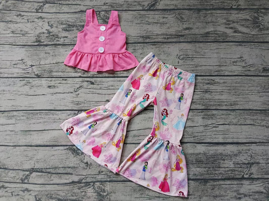 (Custom Design Preorder MOQ 5) Cartoon Princess Print Girls Bell Pants Clothes Set