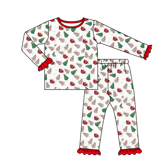 (Custom Design Preorder MOQ 5) Christmas Cake Print Girls Pajamas Clothes Set