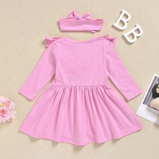 (Custom Design MOQ 5) Pink cotton girls knee length dress