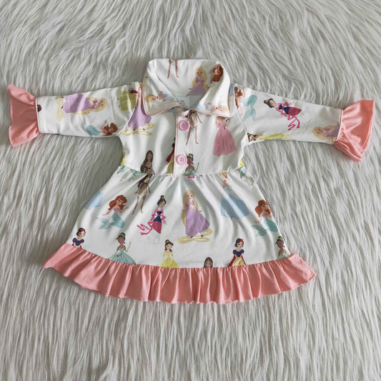 NB0021 Pink horse flowers print baby girls gown newborn clothes