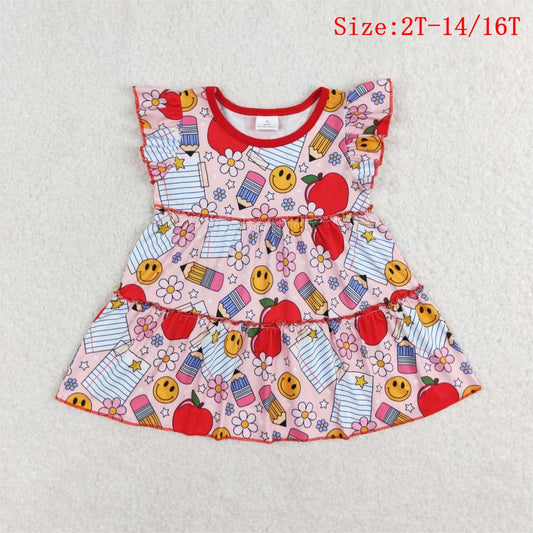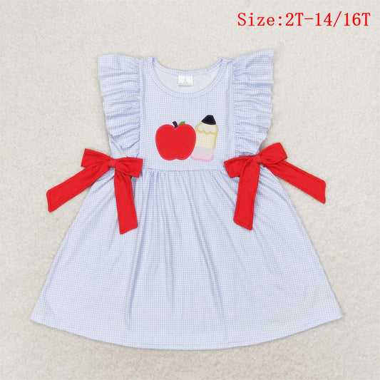 GSD1143 Apple Pen Print Girls Knee Length Back to School Dress