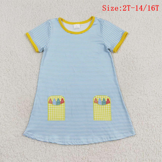 GSD1311 Pen Stripes Print Girls Knee Length Back to School Dress