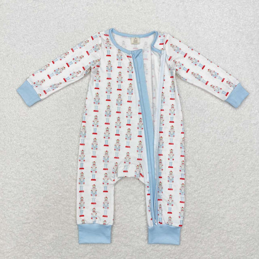USA-Shop LR1184 Cartoon Nutcracker Soldier Blue Print Baby Boys Christmas Bamboo Zipper Sleeper Romper