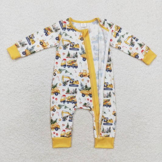 LR1332 Construction Truck Print Baby Boys Christmas Bamboo Sleeper Zipper Romper