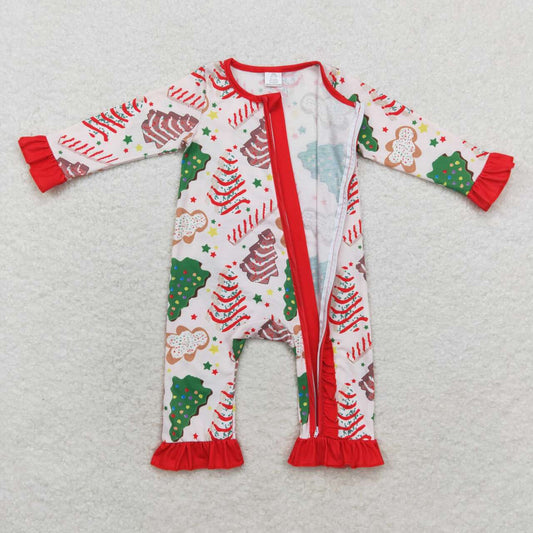LR1149 Christmas Debbie Cake Print Baby Girls Bamboo Sleeper Zipper Romper