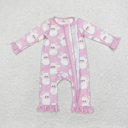 LR1414 Santa Pink Print Baby Girls Christmas Bamboo Sleeper Zipper Romper
