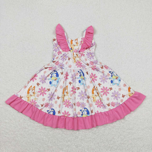GSD0865 Cartoon Dog Flowers Girls Summer Knee Length Dress