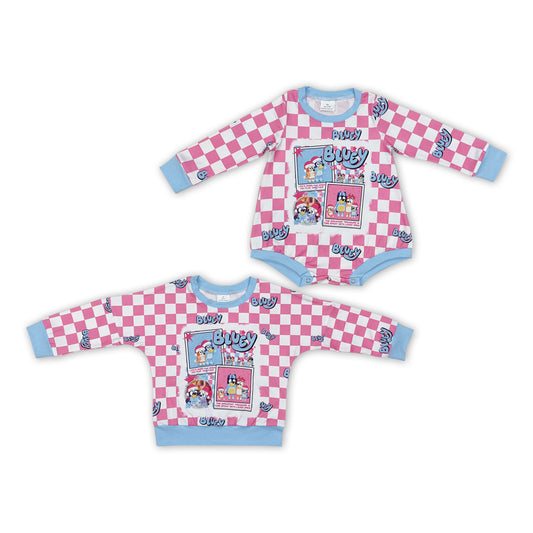 Cartoon Dog Pink Plaid Print Sisters Christmas Matching Clothes