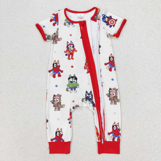 SR1792 Cartoon Dog Hero Print Baby Boys Summer Sleeper Zipper Romper