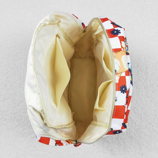 BA0179 Kids Bag Cartoon Dog Red Plaid Print Backpack
