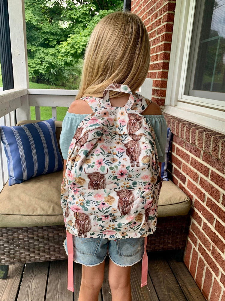 (Pre-order) BA0325 Pink Bows Small Flowers Print Backpack Girls Bags