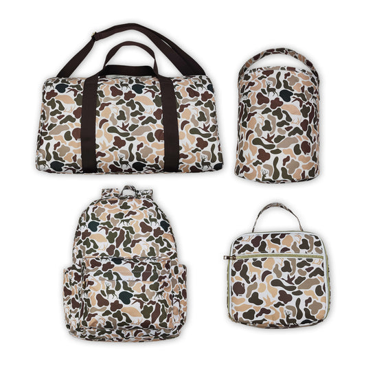 Dog Duck Camo Print Kids Go to School Bags Backpack Lunch Boxes Overnight Bags Basket