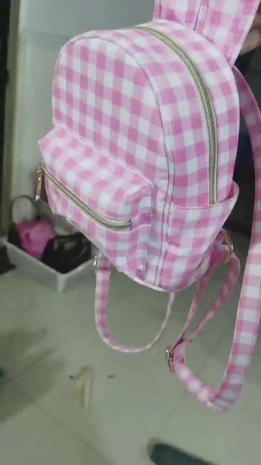 (Pre-order)BA0279 Pink Plaid Print Backpack Girls Bunny Ears Bags