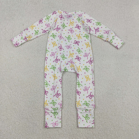 LR2735 Colorful Bows Dots Print Baby Girls Mardi Gras Sleeper Zipper Romper