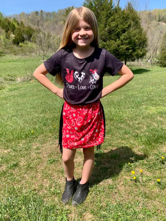 (Promotion)Girls peace love cow top & tassels skirts summer western outfits GSD0302