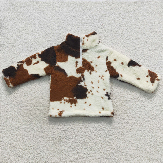 BT0355 Cowhide Print Zip Winter Thick Pullover Kids Sherpa Top