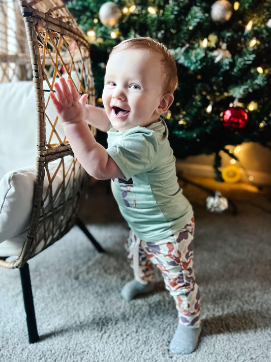 BSPO0378 I Love My Gun Dog Green Top Branch Camo Pants Boys Clothes Set