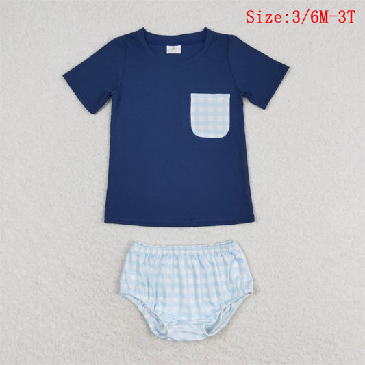 GBO0399 Blue Pocket Top Plaid Shorts Baby Boys Summer Bummie Set