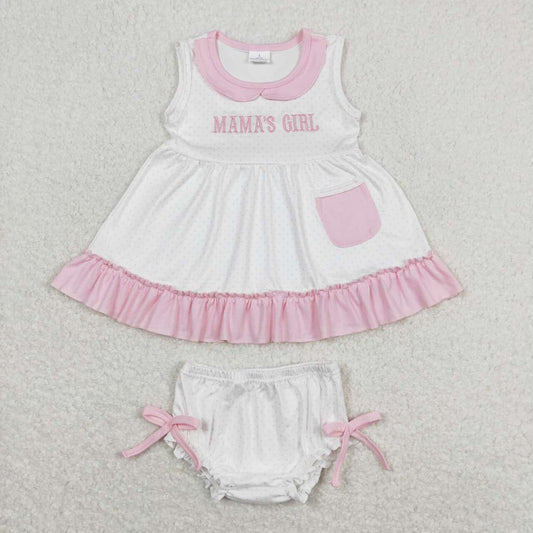 GBO0280 MAMA'S GIRL Embroidery Pocket Top Baby Girls Summer Bummie Set