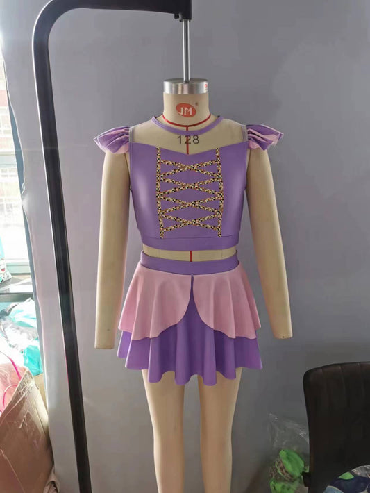 S0145 Girls purple cartoon princess design 2 pieces swimsuits