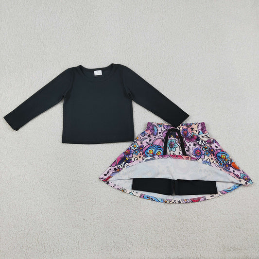 GLD1425 Black Top Cartoon Demon Movie Flowers Skirts Shorts Girls Clothes Set