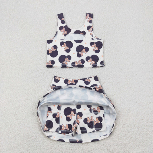 GSD1934 Cartoon Mouse Print Skirts Shorts Girls Summer Yoga Clothes Set