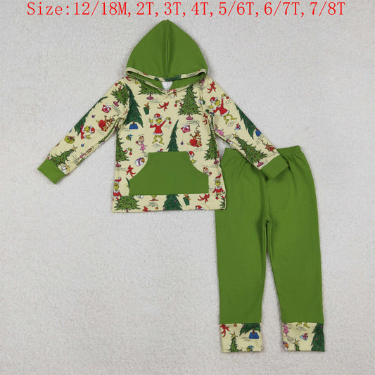 BLP1224 Green Frog Tree Hoodie Top Green Pants Boys Christmas Clothes Set