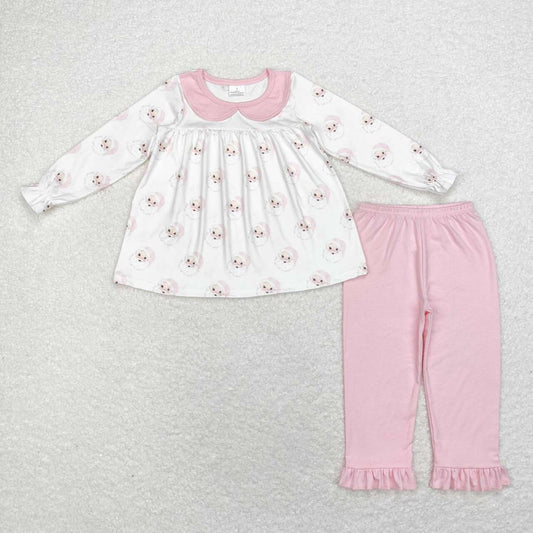 Santa Deer Embroidery Pink Stripes Print Sisters Christmas Matching Clothes