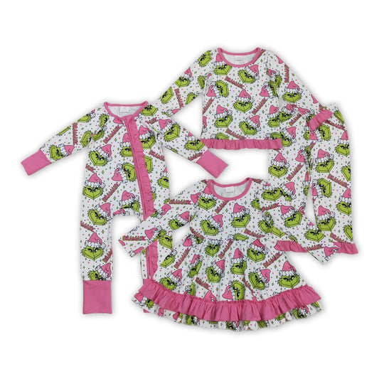 Green Frog Pink Girls Christmas Clothes Sisters Matching Wear