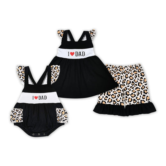 I LOVE DAD Embroidery Black Leopard Print Sisters Father's Day Matching Clothes
