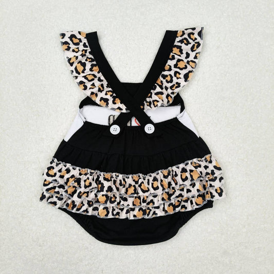 SR1147 I LOVE DAD Embroidery Leopard Print Baby Girls Summer Bubble Romper