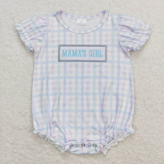 SR1091 MAMA'S GIRL Embroidery Plaid Baby Girls Summer Romper