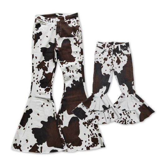 Mommy and Me Matching Jeans- Cow Print Denim Western Bell Bottom Pants