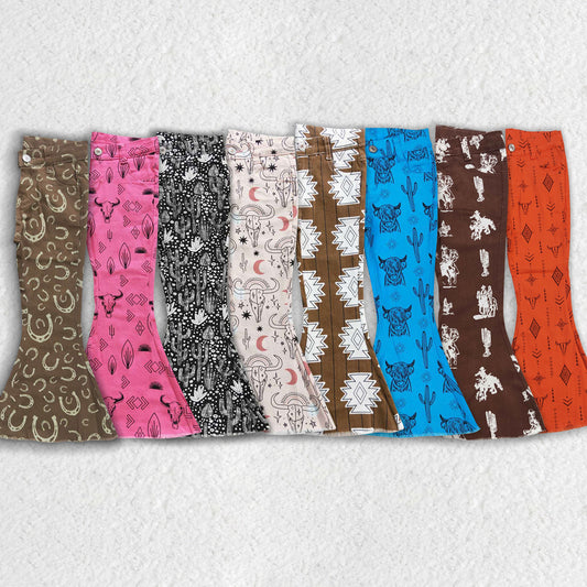 8 Print Denim Fabric Bell Bottom Jeans Girls Western Pants