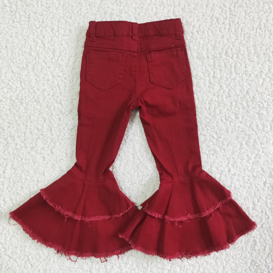 Girls Red Ruffles Elastic Waistband Jeans Summer Denim shorts SS0010