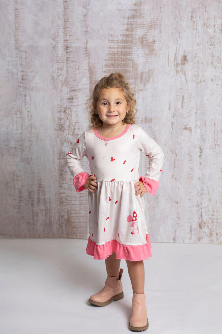 GLD1120 Colorful Small Flowers Print Girls Long Sleeve Knee Length Dress