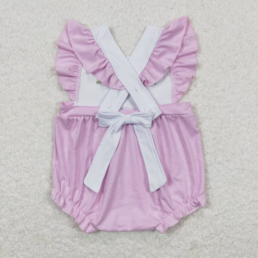 SR0620 Pink Bunny Embroidery Baby Girls Easter Romper
