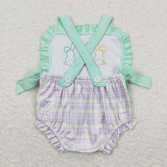 SR0543 Bunny Embroidery Print Baby Girls Easter Romper