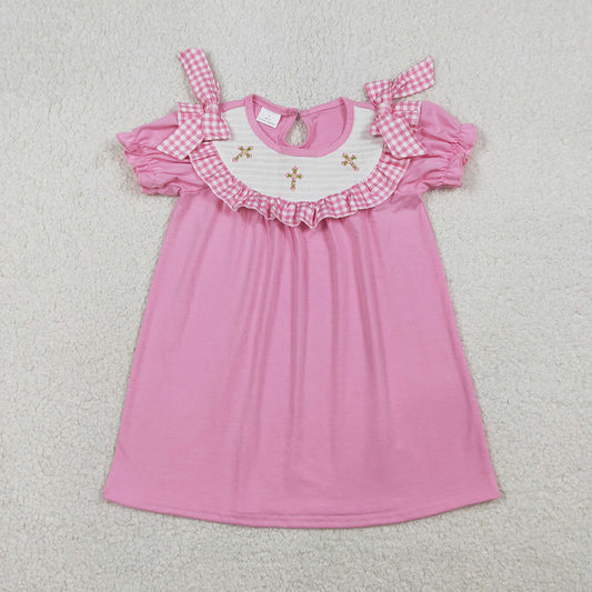Cross Embroidery Pink Plaid Girls Easter Matching Smocked Clothes Sisters Wear