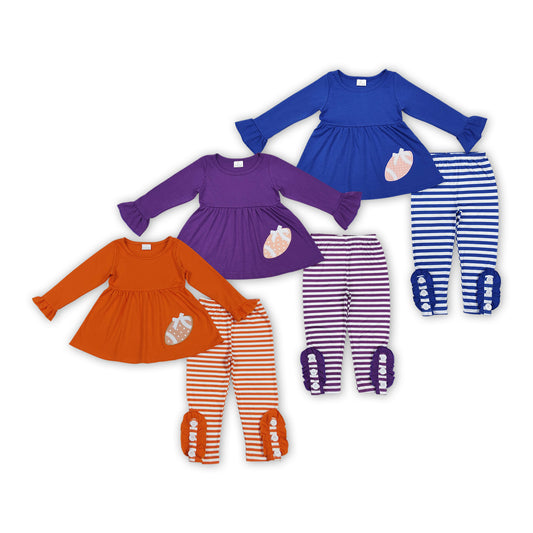 3 Colors Football Embroidery Tunic Top Stripes Pants Girls Fall Clothes Sibling Wear