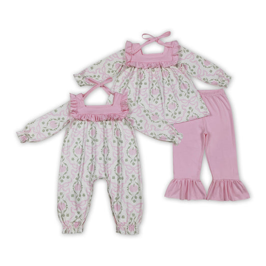 Pumpkin Bows Print Girls Fall Clothes Sisters Matching Wear