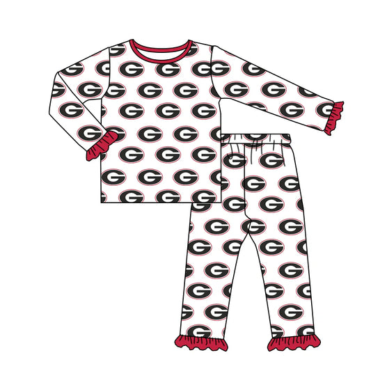 (Custom Design Preorder MOQ 5) Team's Georgia Print Girls Fall Pajamas Clothes Set