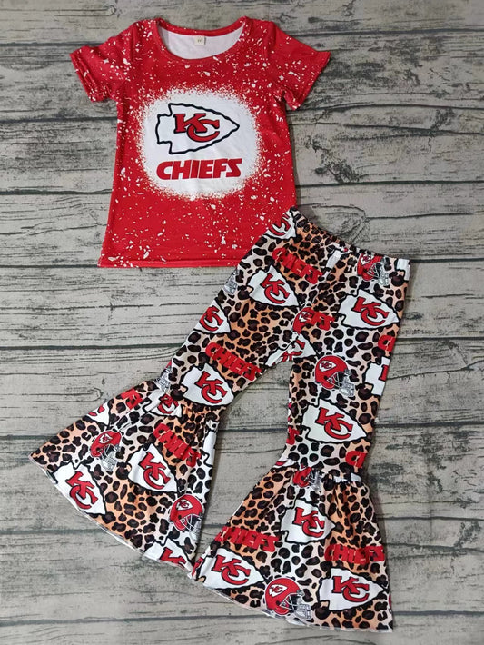 (Custom Design MOQ 5) Red Football Team's Print Girls Bell Pants Clothes Set